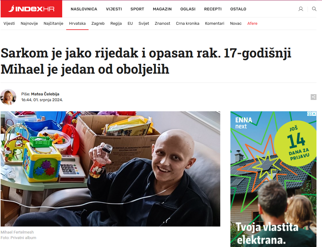 Udruga Sunčani put nastala je iz osobne borbe i iskustva s rijetkom bolešću – sarkomom mekog tkiva CIC-DUX4. Naš sin, pun života i snova, suočio se s ovom dijagnozom prije svog 17. rođendana. Kroz njegovu hrabrost i našu borbu, shvatili smo koliko je važno imati podršku, informacije i zajednicu koja razumije s čime se oboljeli i njihove obitelji suočavaju.